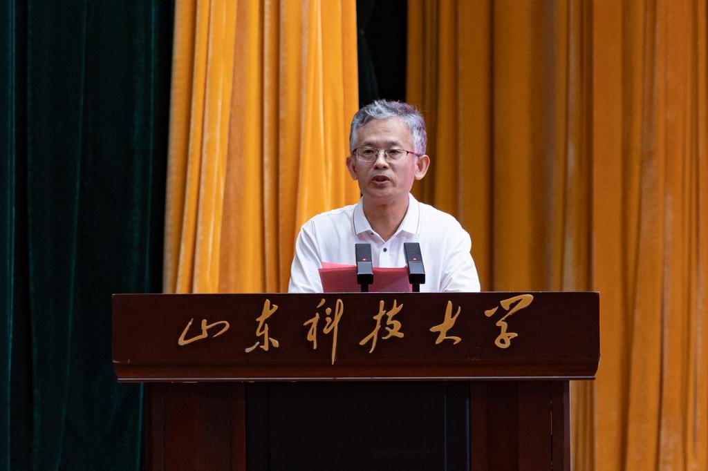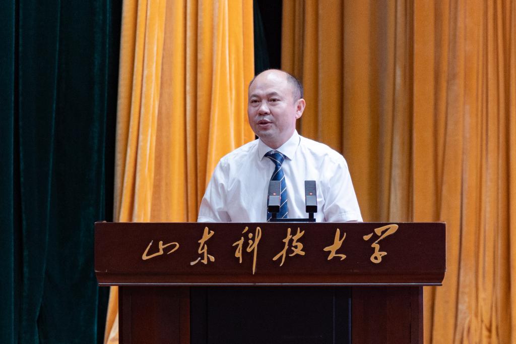 教师代表季民从树立目标、学习创新、自律自强等方面讲述了如何开启新的大学生活,深情寄语同学们:以梦想为笔,以实干为墨,在这片山海之间,共同绘制属于你们的、属于中国测绘的壮丽篇章!