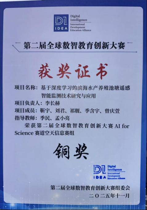 获奖项目“基于深度学习的滨海水产养殖池塘遥感智能监测方法研究”聚焦滨海养殖池塘“看不清、分不准、泛化弱”等难题,面向水产养殖精细化管理这一实际需求,构建了从遥感影像预处理、超分辨率重建到池塘精细提取与结果可视化的一体化技术方案。项目以 Sentinel-2 等中低分辨率卫星数据为基础,自主设计 Transformer 架构的超分辨率重建模型 CAPSR,引入动态稀疏自注意力与尺度感知交互模块,并结合 Top-K 特征筛选策略,在抑制背景干扰的同时有效恢复池塘边缘和堤坝等高频纹理细节,大幅提升影像判读质量。在目标提取环节,团队构建了边缘监督多任务网络 MAENet,将边界几何约束与内部距离场双重监督相结合,配合选择性任务融合模块和自适应损失权重优化方法,显著增强了池塘边界识别的完整性和跨区域泛化能力。项目实现了从低分辨率卫星影像到高精度养殖池塘制图的闭环监测流程,在典型试验区取得了精度高、鲁棒性强、成本低、易推广的应用效果,为滨海水产养殖资源的动态监测与科学管理提供了可复制的技术路径与实践支撑。