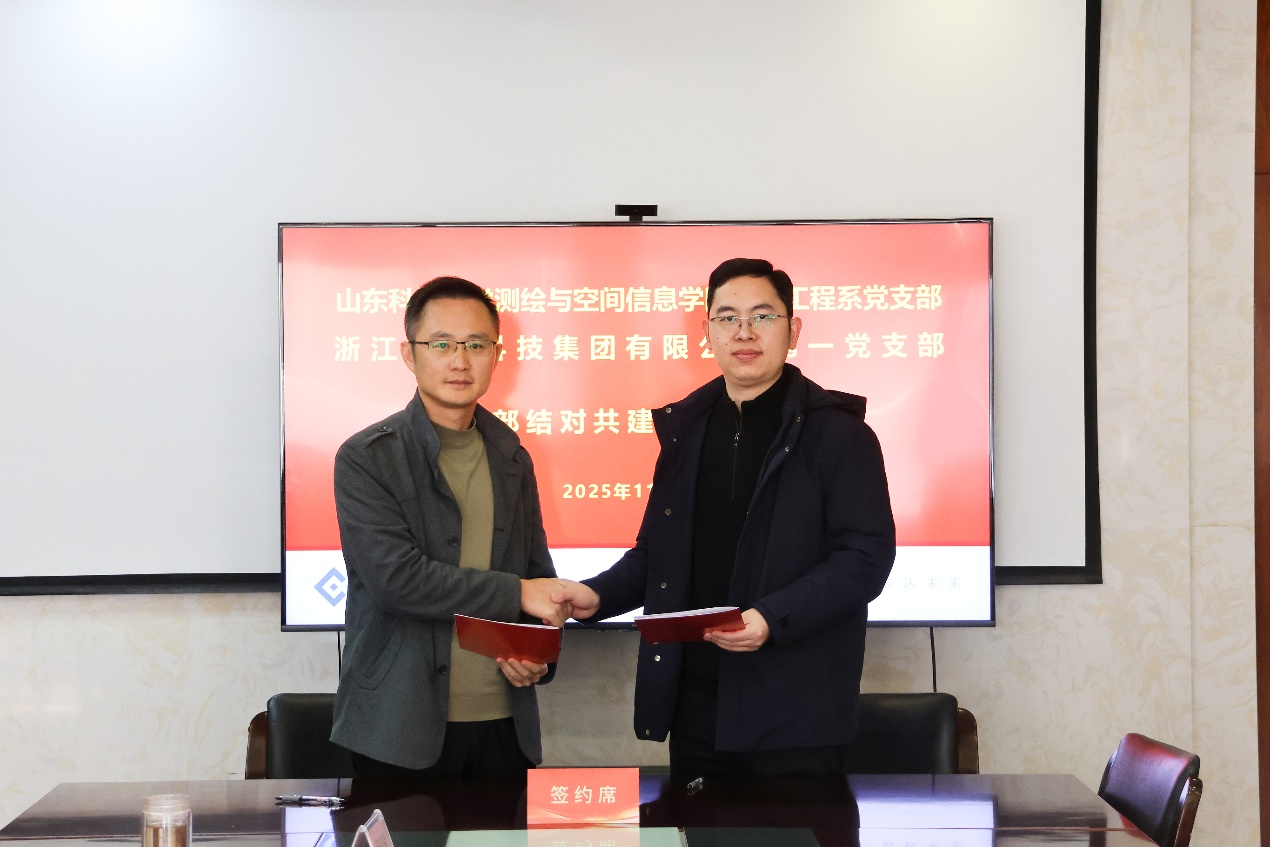 在杭州期间,范俊峰带队赴浙江地信科技集团有限公司开展党支部共建活动。浙江地信科技集团党委书记、董事长葛为燎,浙江地信科技集团有限公司第一党支部书记余钦墅及支部党员代表参加活动。会上,浙江地信科技集团有限公司第一党支部书记余钦墅与测绘工程系教工党支部书记刘如飞共同签订《党支部结对共建协议书》,标志着双方在党建引领下正式构建全方位协作机制,通过党建共建与业务融合,推动产学研用深度协同。