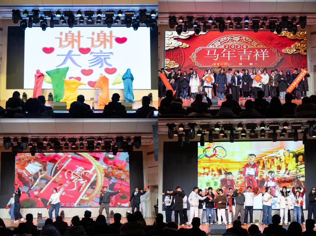 在联欢会开始前,范俊峰致辞,他回顾了2025年h视频在思政建设、教学科研、人才引育、学团工作等方面斩获的丰硕成果,展望了2026年新发展蓝图,并向全体师生致以美好祝福。