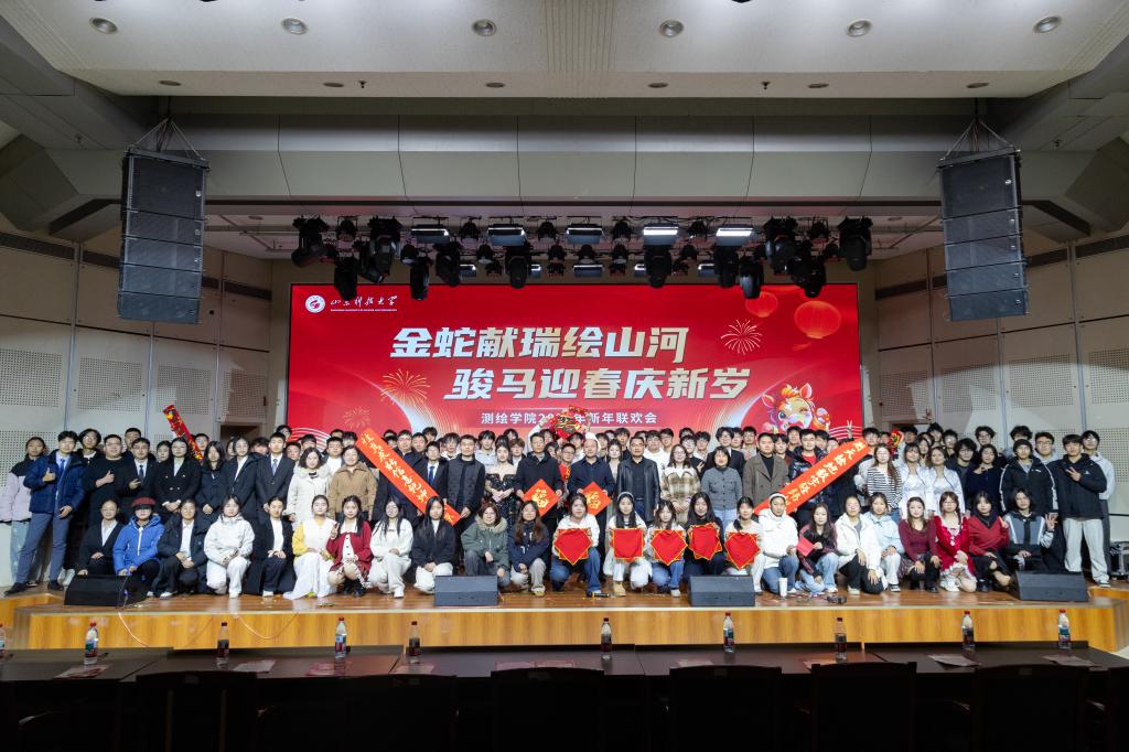 第三篇章“同心筑梦、共贺新程”中,地信25-2班的节目《布织火舞》与地信25-1班的舞台剧《我的未来式由我做主》将气氛瞬间点燃,最后,联欢会在权益部、地信25-3班、测绘25-3班合作的歌曲串烧《岁岁欢歌贺新年》中落下帷幕,师生共同合影,留下珍贵回忆。