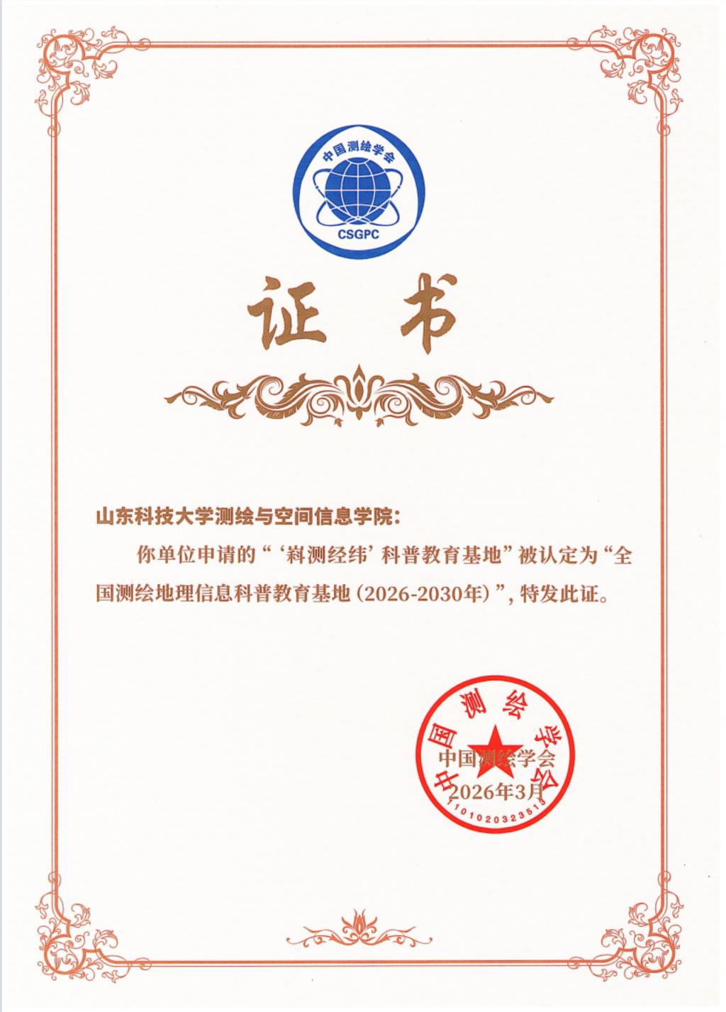 依托测绘工程国家级实验教学示范中心建设的“嵙测经纬”科普教育基地顺利通过复评,成功入选2026-2030年度名单,这是对基地科普教育工作成效的高度认可。