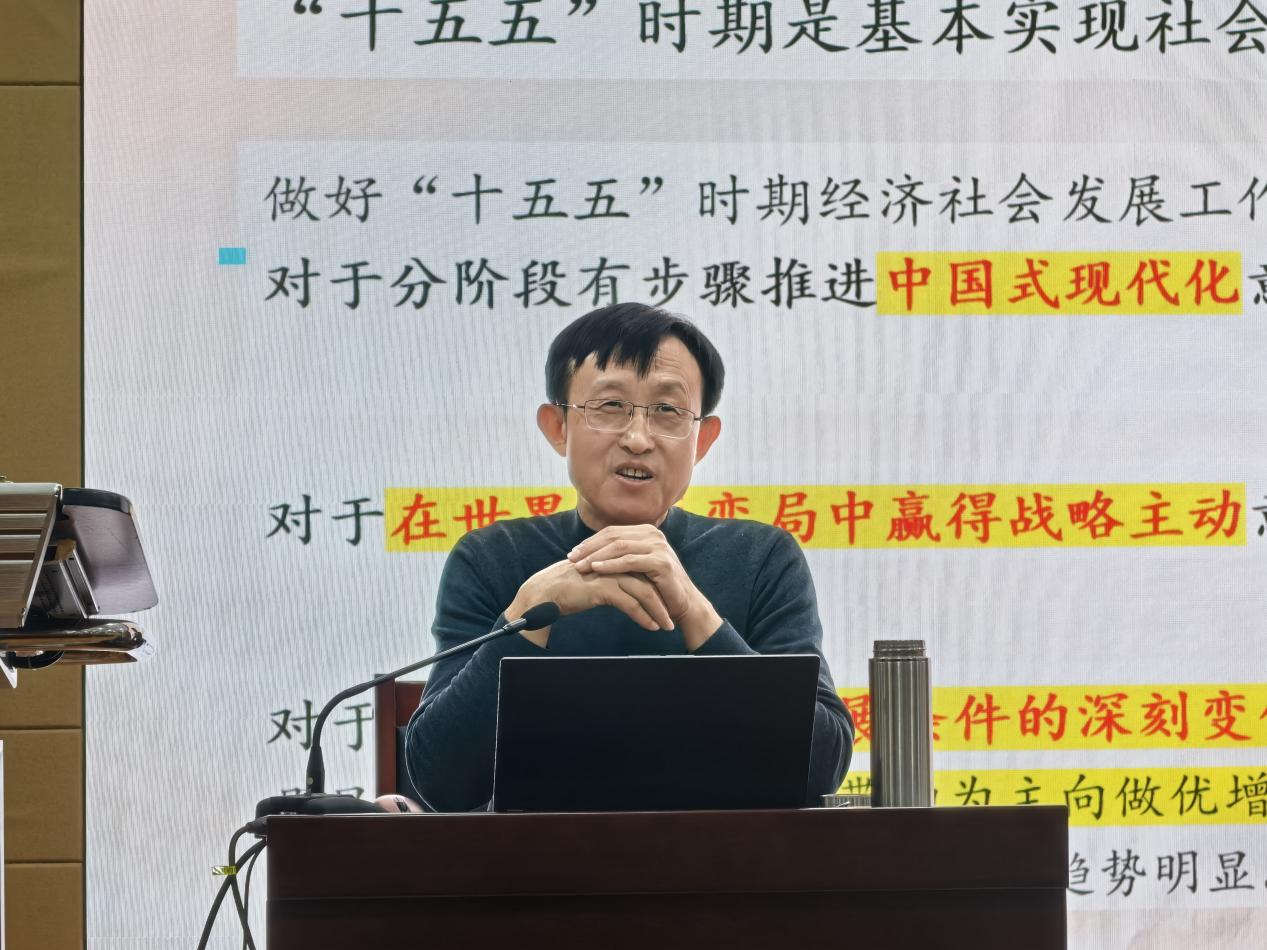 孙绪民教授围绕全会召开的重大意义、核心内容以及全会精神的十大创新点等方面进行了系统阐释和深入解读。报告从第十五个五年规划的重要地位及面临环境,高水平科技自立自强的内涵特质,我国高水平科技自立自强的短板,高水平科技自立自强的战略路径等四个方面,系统阐释了“十五五”时期的历史方位和发展环境,明确了“十五五”时期经济社会发展的指导思想、遵循原则、主要目标、战略任务和重大举措。结合当前国内外形势与发展大局,深入分析了新时代新征程上高等教育工作者所肩负的使命责任。报告内容翔实、脉络清晰、论述深刻,既有理论高度,又紧密联系实际,对全体与会师生深化理解、推动工作具有重要的指导意义。