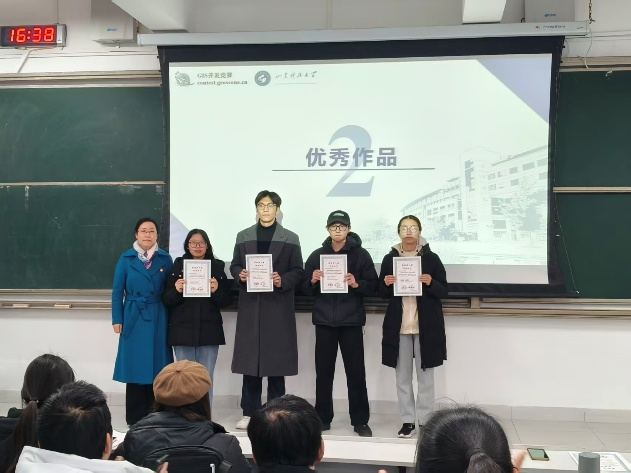 分享会伊始,赵老师与刘老师先后上台发言。两位老师首先对2023级学子在全国大学生GIS应用技能大赛中斩获特等奖表示热烈祝贺,肯定了他们用专业实力为h视频争光的优异表现,随后围绕“以赛促学、以赛促练、以赛促创”的育人目标,结合h视频