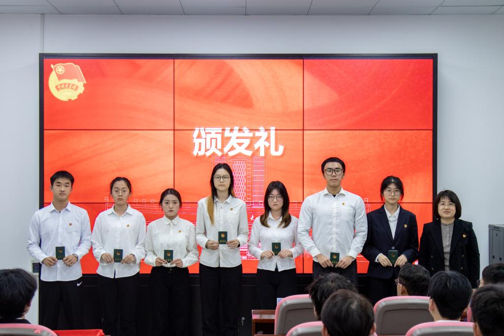 辅导员韩冰、优秀团员代表、新发展团员参加仪式。